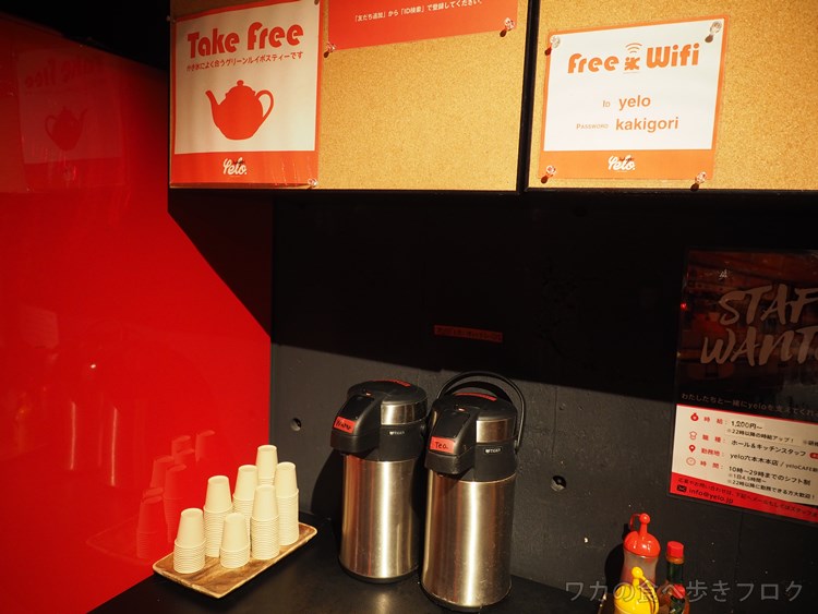 温かいお茶はセルフでフリ~ 氷で冷えるので嬉しいサービス♪