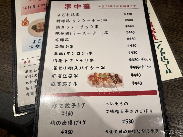 こっちは昼坦々麺、夜は坦々麺+串中華で
