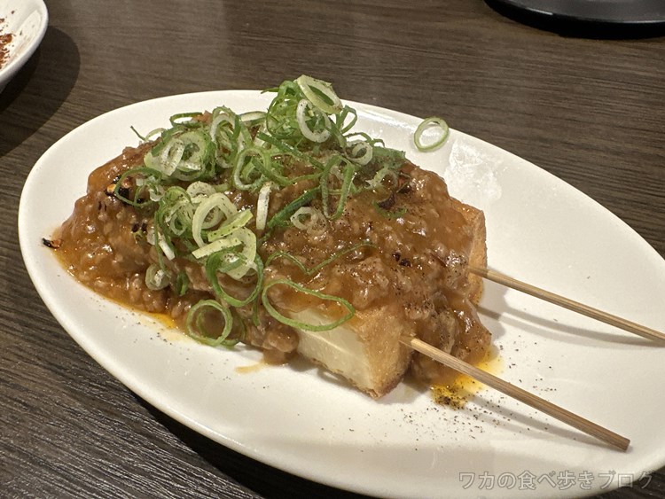 揚げたお豆腐に、とろみのあるピリ辛ミンチ餡が乗ってる感じ
