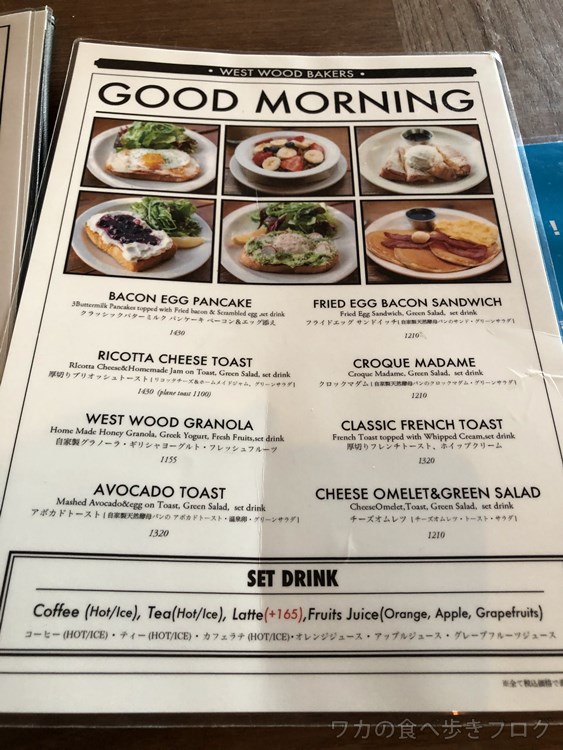 カフェラテ+165円と、リコッタチーズトーストのセット1430円
