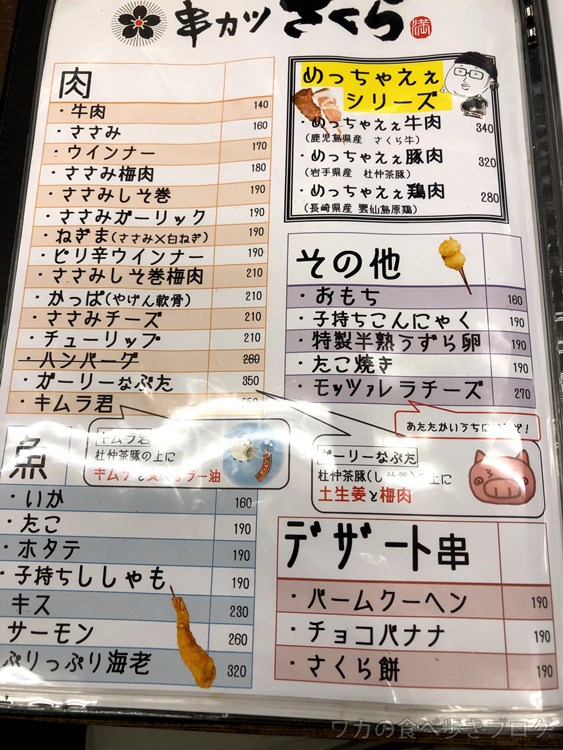 串カツ 紅しょうが140円×2 めっちゃえぇ牛肉340円 めっちゃえぇ豚肉320円