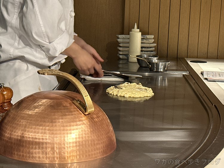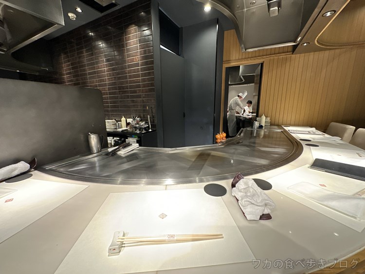 鉄板カウンターは、焼き手とお客さんがマンツーマンになるように