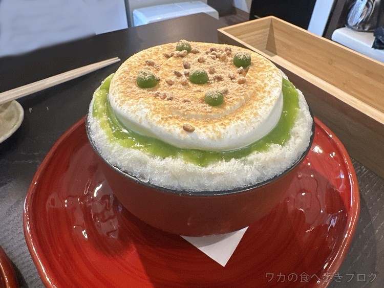 ふわっとしたクリームにきなこ、うぐいす餡が和風パフェのように
