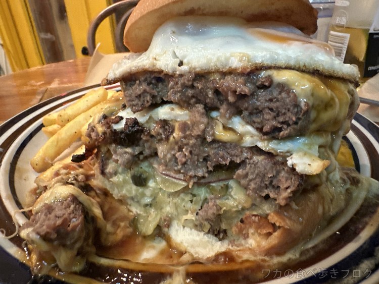 デカイ・・・ パティは225gあって、ダブルだと450gワンポンド。