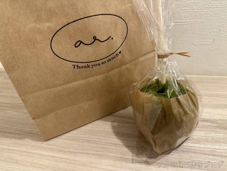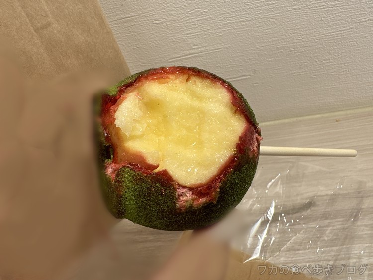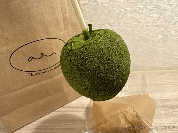 リンゴ飴に抹茶パウダーが綺麗にコーティング