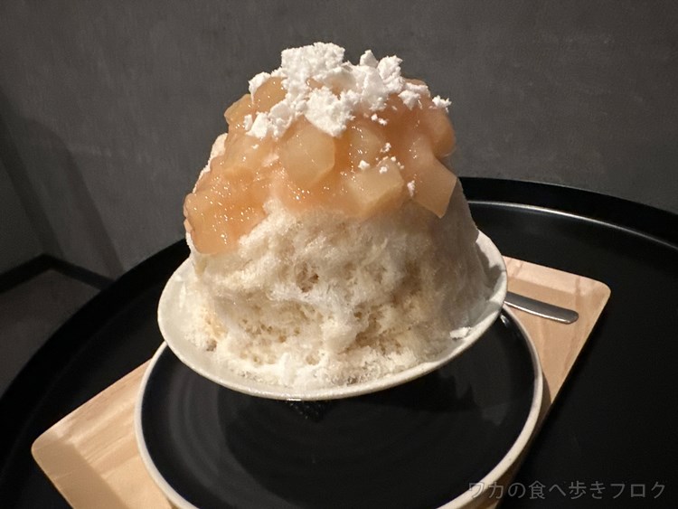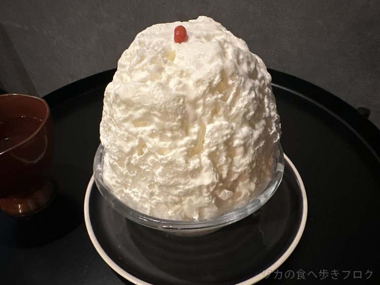 紅茶ベースのかき氷で、中にたっぷりのクリチ。
