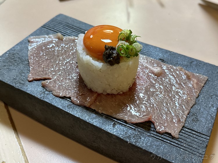 TOPに桃の何やら、上にメレンゲ菓子が乗ってる。