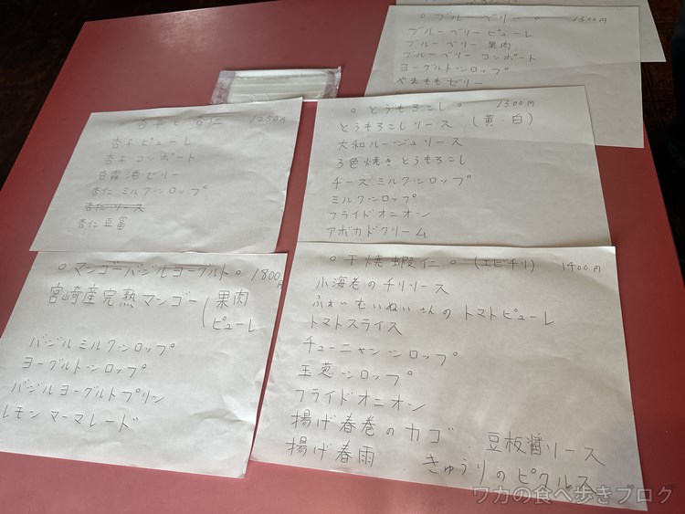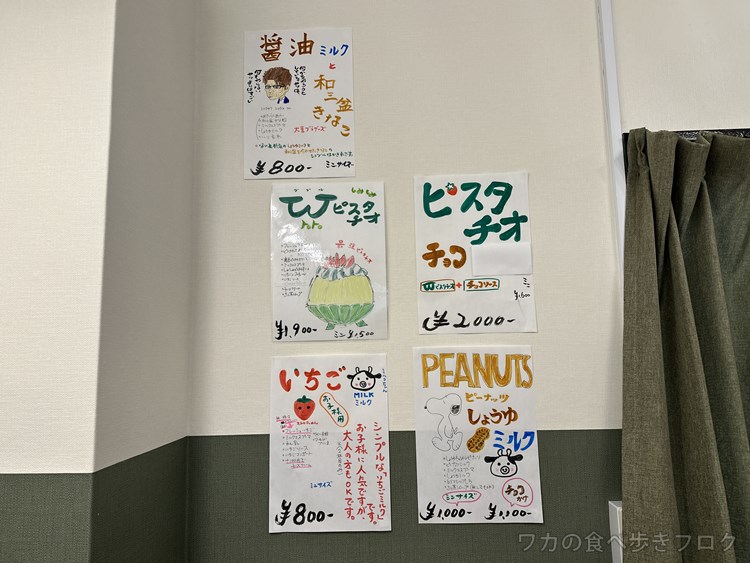 かき氷メニュー