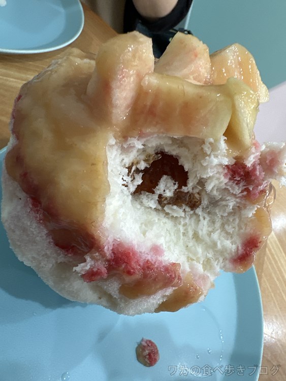 とろとろ桃ソースに赤いのなんだろ、甘酸っぱさが良い感じ♪