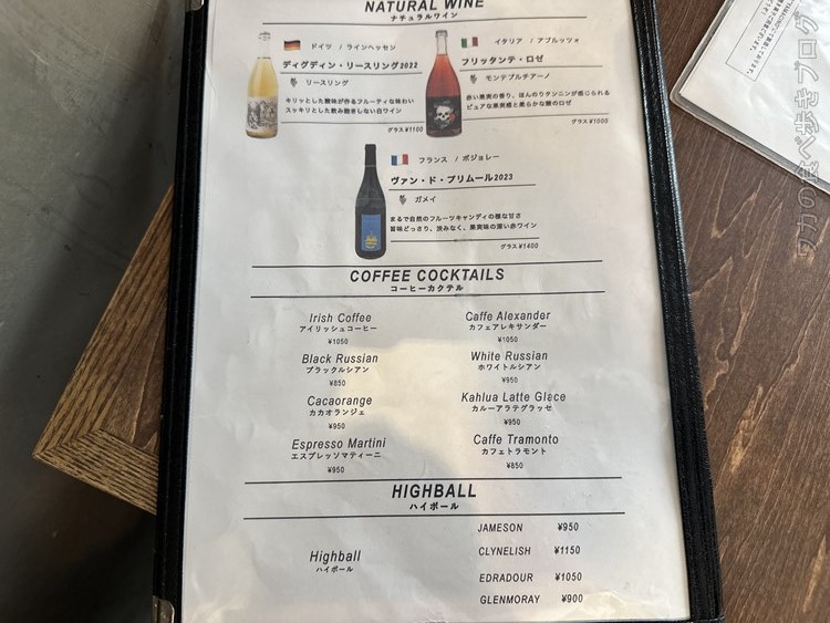 焼き菓子達と共に、コーヒー系、お酒のメニューも。