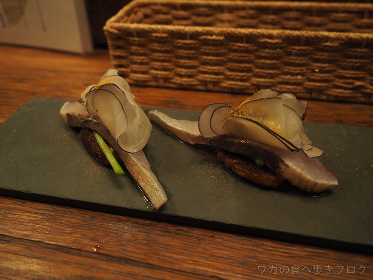 縞鯵 黒大根と大根餅 レモングラスソース 8.90d