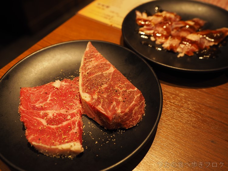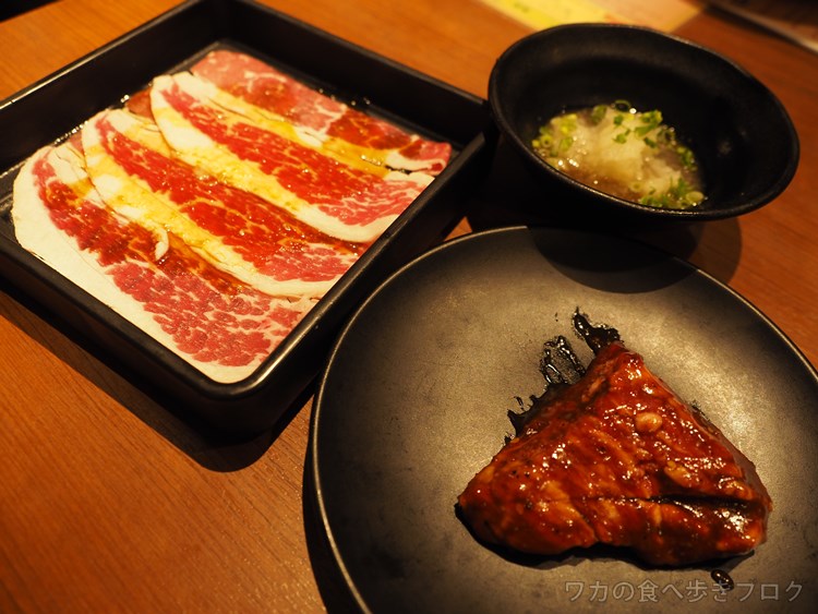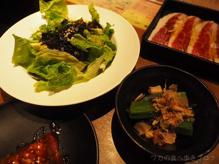 期間限定メニューの焼きしゃぶロース(柚子おろし)、塊カルビ(八丁味噌ダレ)