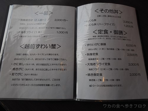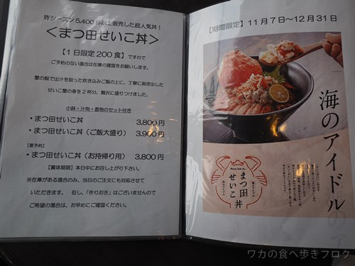 遅い時期はまつ田ずわい丼、その他の時期も刺身、魚の定食や丼があります