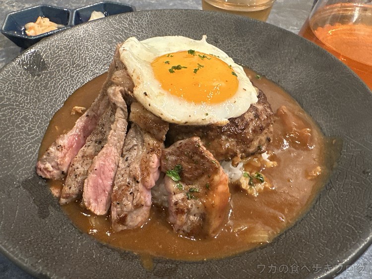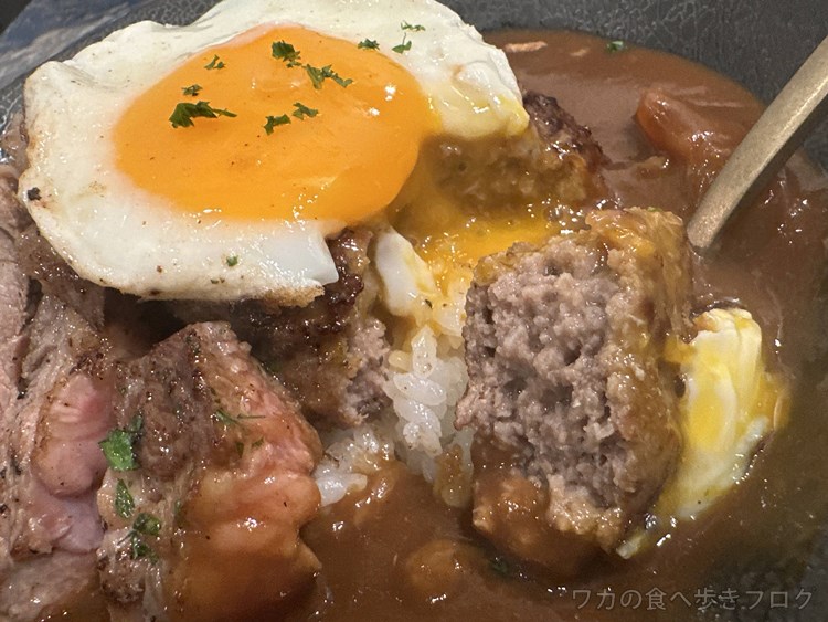 ハンバーグカレー 目玉焼き、ステーキトッピング