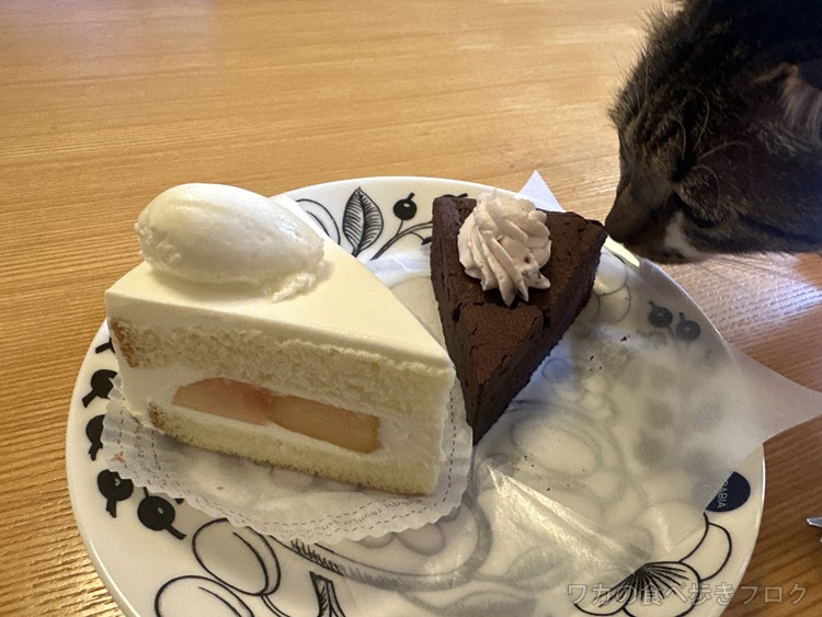 購入した桃のショートケーキとガトーショコラ