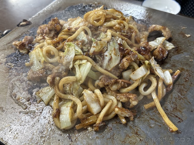 ホルモンの甘みのある焼きうどん