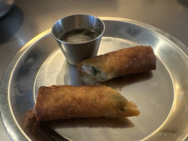 パリパリッ香ばしく食感の良い皮、プリッシャキッと海老や香草とか効いた具旨い♪