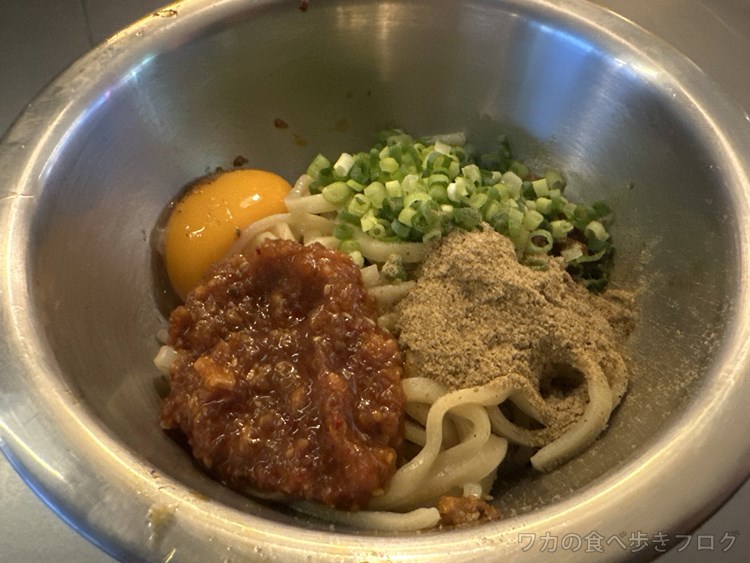 らーめんのまぜそばより、だいぶ甘みのあるタレが特徴的