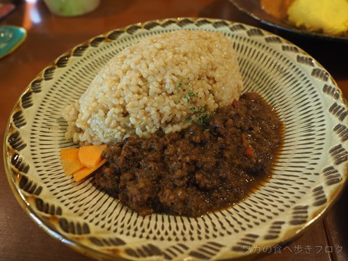 カレーがキーマだけどサッパリとしていて旨みと共に辛さがじんわりと後から・・・