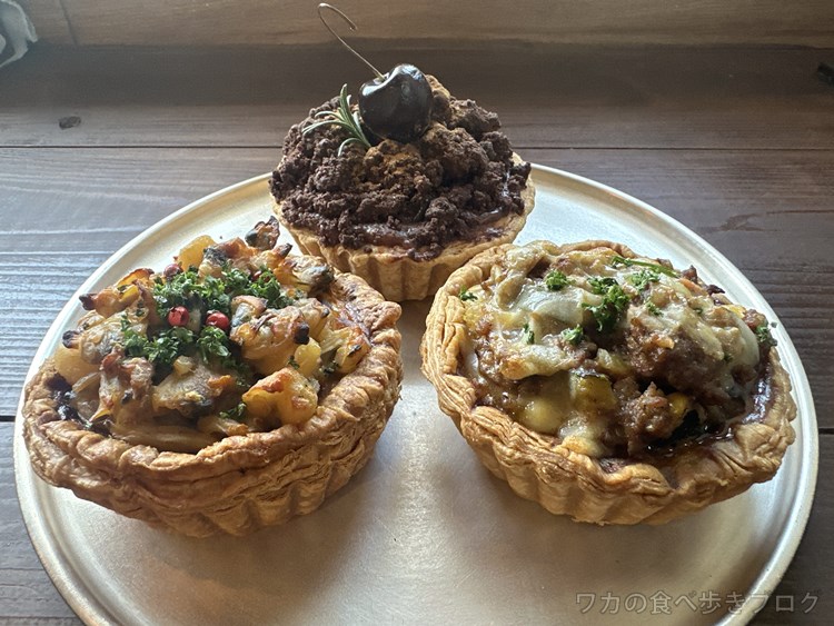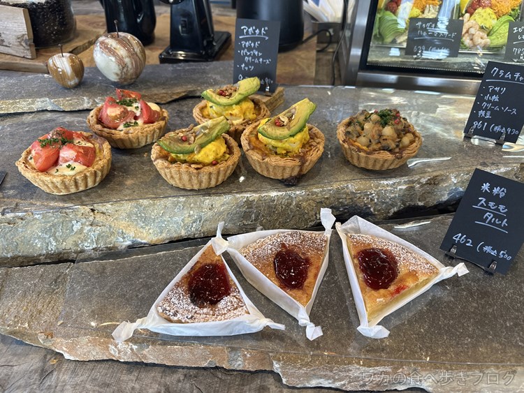 焼き菓子とキッシュと、冷蔵ケースにスイーツなタルトも。
