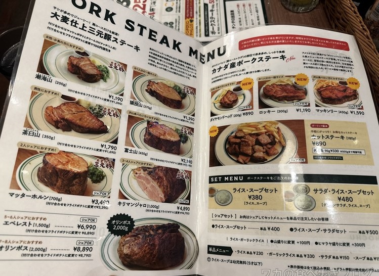 大きいポークステーキで有名なお店だけに、450g以上はいきたいよね~